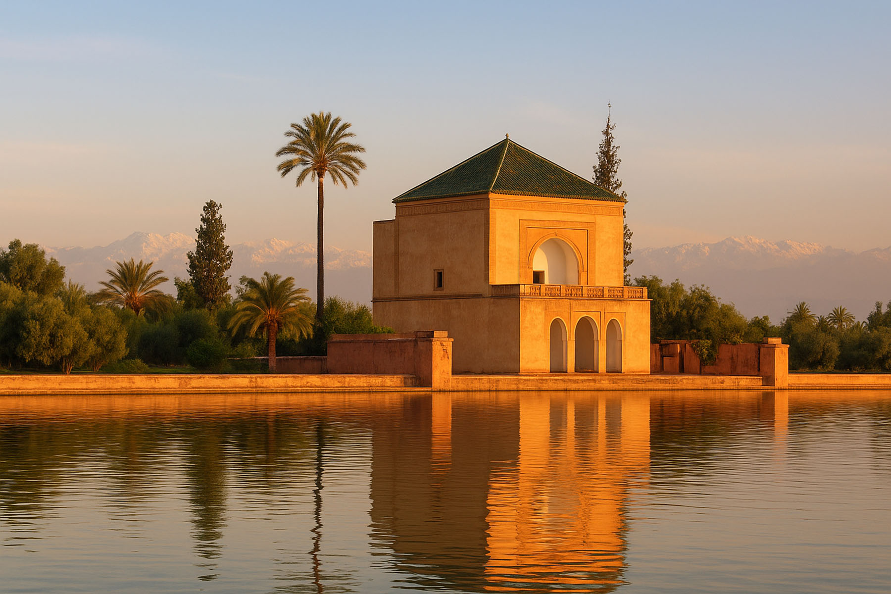 🌳 Jardines de la Menara: Recorre sus olivares y el emblemático pabellón lateral.
